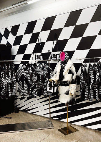 Furthermore, the launch party was a beautiful celebration of fashion, art, and music at Doors NYC in Soho. Artist DOT (Daniel Shoykhet) created a painted mural wall with his signature checker patterns and Grammy nominated Valerie June performed at the event.
