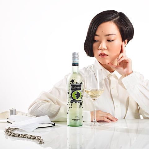 We are so grateful to have received Ecco Domani’s 2022 grant and the opportunity to create a limited-edition design — and now also to be part of the legacy of this program and its previous brilliant design partners. Our wine bottle design is centered around stars and was inspired by the meaning of Ecco Domani, “Here’s Tomorrow” — the idea of looking to the future, hope, and aspiration reminded us of the electric energy of New York, which is at the root of PRIVATE POLICY. We love how the act of star-gazing leads to inspired thinking and hope for the future. The sparkling lights of New York City, while viewed from afar, make one excited for the infinite possibilities life has to offer. For us, the limited-edition bottle encapsulates the futuristic design and vision of both of our brands. Ecco Domani’s 2022 grant will be funding PRIVATE POLICY's community projects and business development. As an emerging fashion brand, the funding support will make a big difference for us in realizing our unique vision.