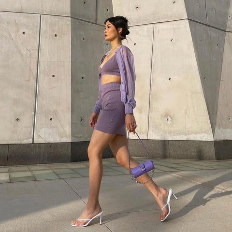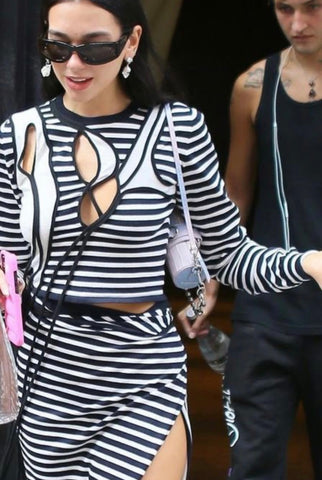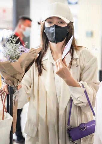 Dua Lipa wearing the Barrel Bag in color Lilac Dipdye