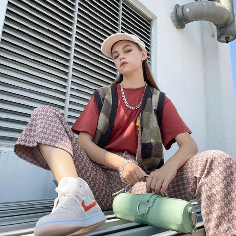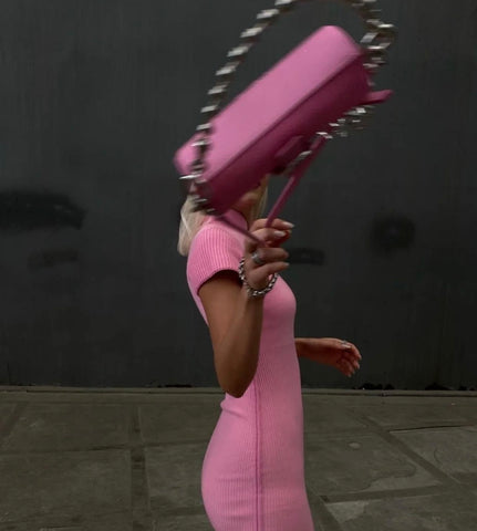 @auksegrei wearing the Barrel Bag in Pink