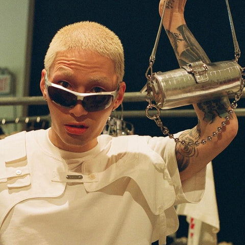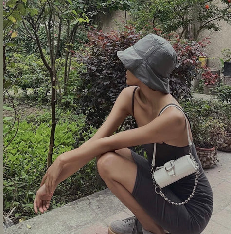 @nomahan wearing the Barrel Bag in Silver
