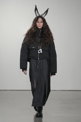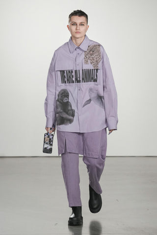 Inspired by animals’ highly practical nature, which is similar to city life needs, the PRIVATE POLICY FW2023 collection features utilitarian details such as harnesses, tactile pockets, and buckle hardware. Sustainability is important for our future harmonious relationship with other animals. The slanted checker pieces are crafted from unwanted, reclaimed denim garments donated by our community, and statement outerwear designs are made of recycled poly faux fur, showing our furry fandom. We also blend elements of goth and grunge subcultures with animalistic characters to seamlessly bring the beauty and vitality of nature into the urban lifestyle, like with the custom-made CASETiFY phone cases with animalistic Private Policy designs. We believe that by doing so, we can not only end human supremacy but also begin to heal the damage caused by our detachment from nature to our environment and mental health.