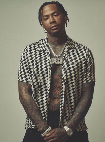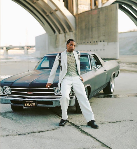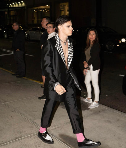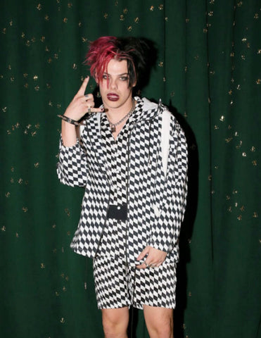 Yung Blud wearing the PXL Checker print suitYung Blud wearing PXL Checker set