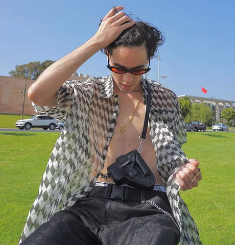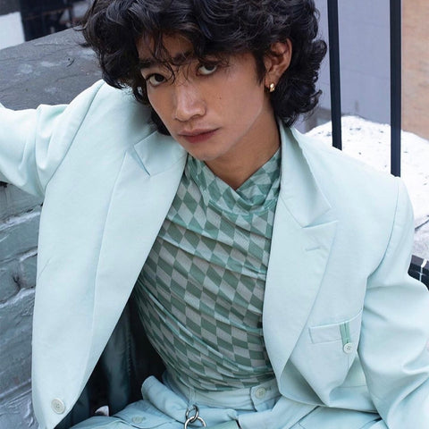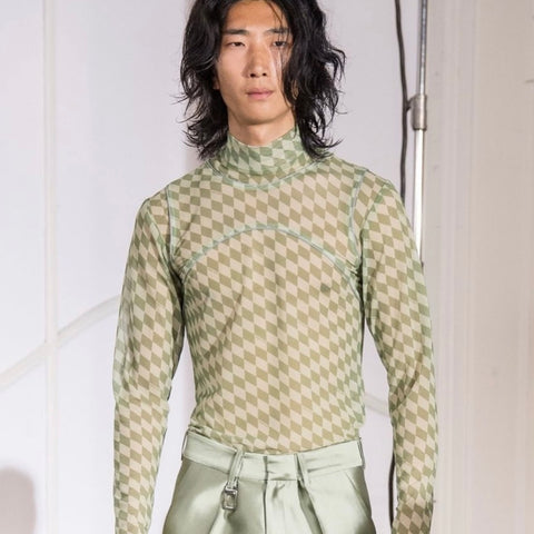 Bretman Rock wearing the PXL Checker Mesh top in green